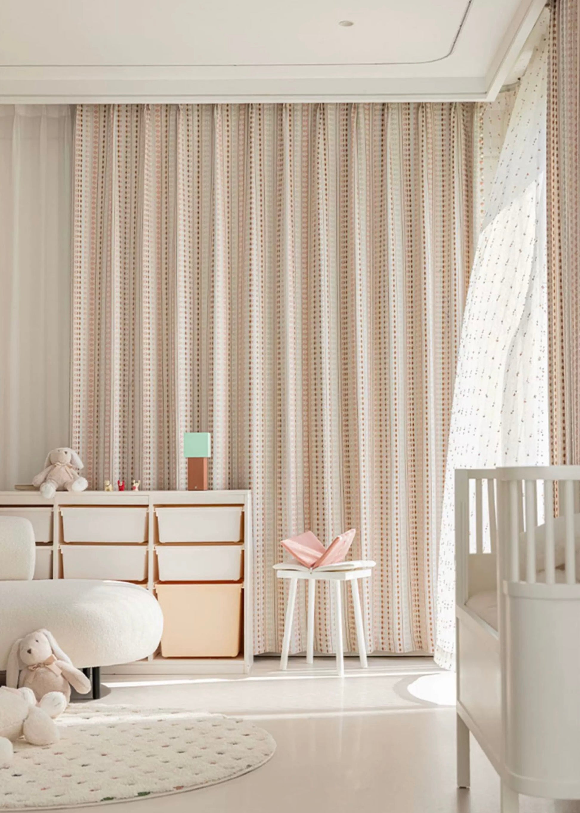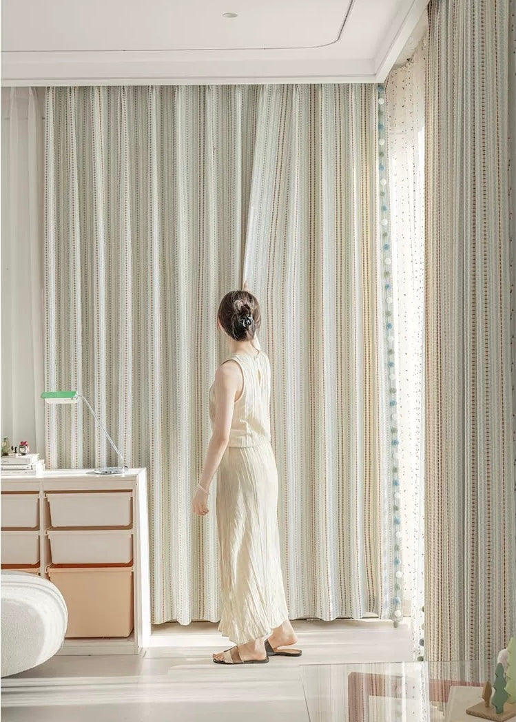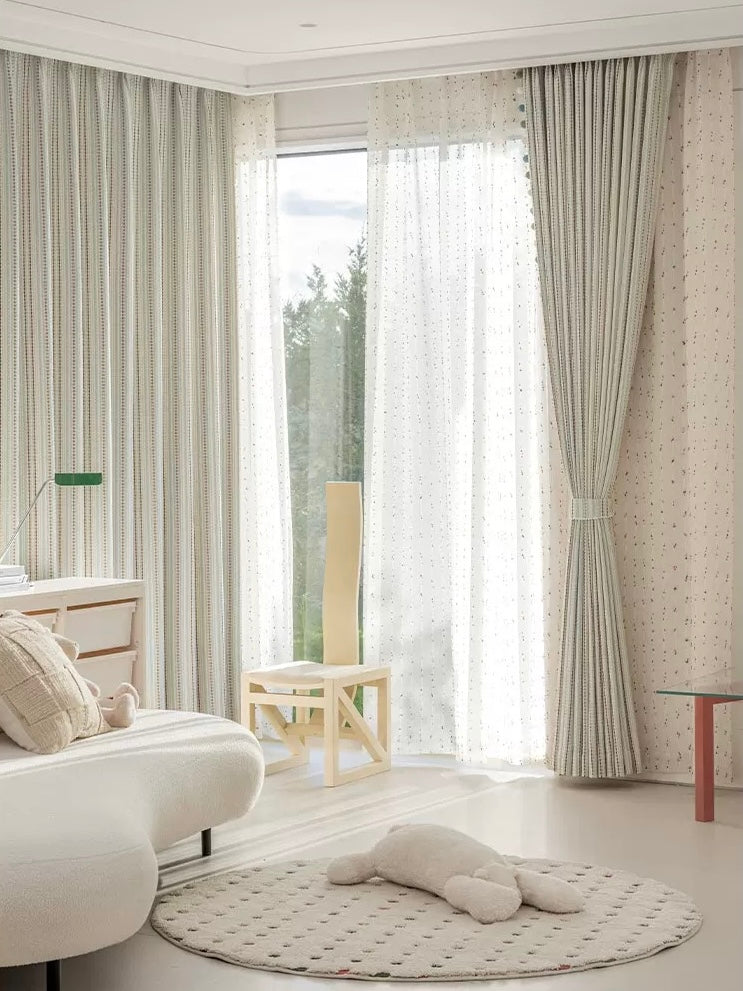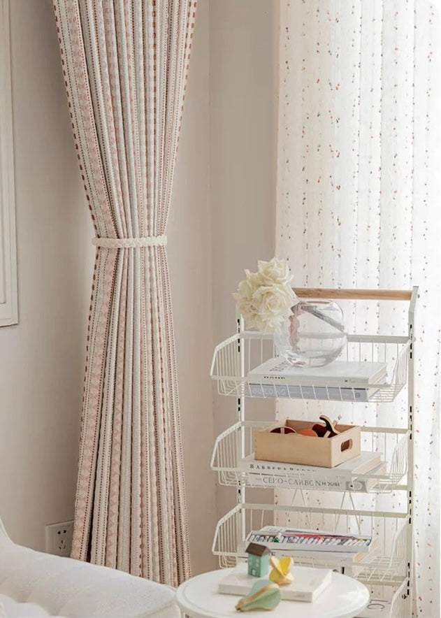こちらのカーテンではサイズ・サイドのポンポン装飾オーダーが可能です。ご希望の 商品名+仕様を【Contact Us】フォームよりご連絡くださいませ。